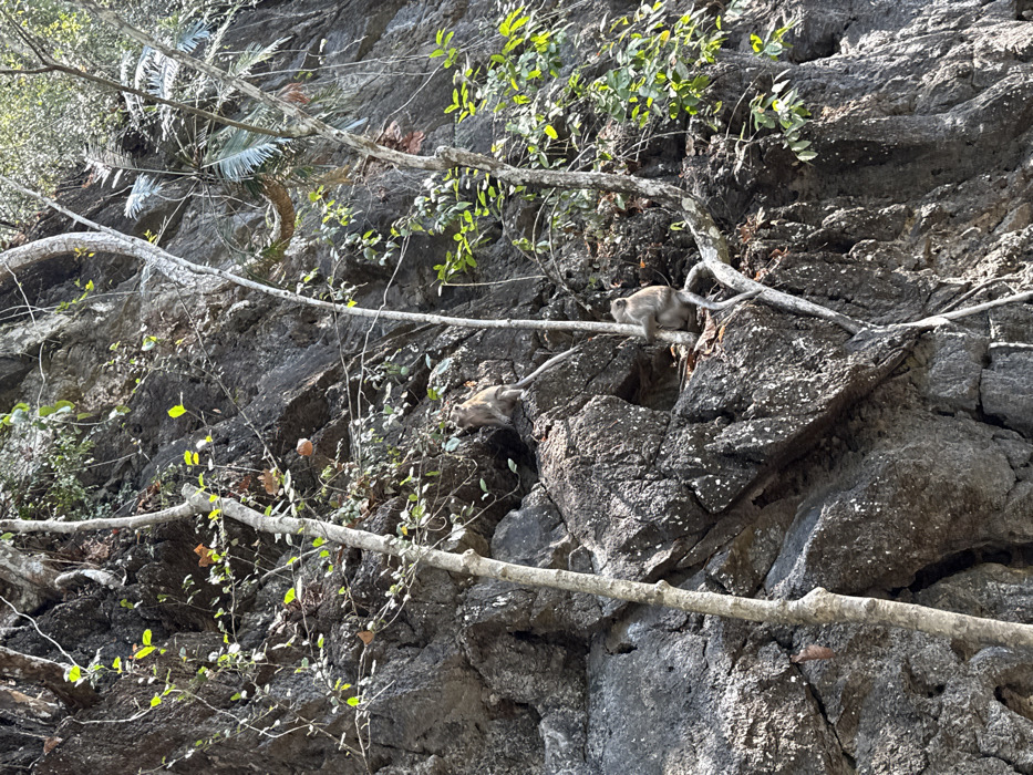 - "Two monkeys inhabit a rugged rock face, intertwined with branches and sparse foliage" by FM-Mlchq1, licensed under CC BY 4.0