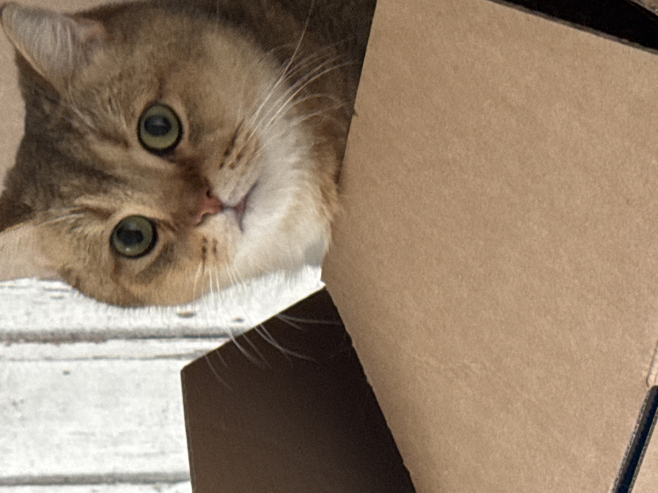 - "A domestic cat is depicted emerging from or peeking over the edge of an open, unprinted brown cardboard box, situated in an interior setting within l'Hospitalet de Llobregat, Spain" by FM-hin5S2, licensed under CC BY 4.0