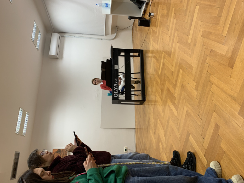 - "Inside a bright room with parquet flooring, a pianist in a red sweater sits behind a black "OLYA EVO" digital piano" by FM-h5Prz1, licensed under CC BY 4.0