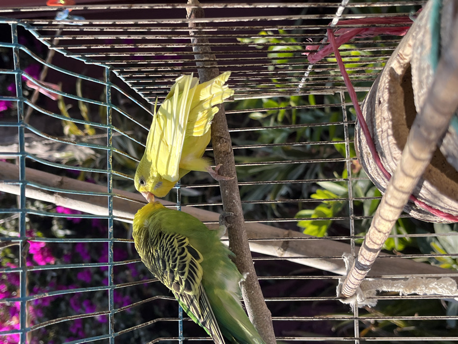 - "Two budgerigars are close together in a cage" by FM-c5Nd33, licensed under CC BY 4.0