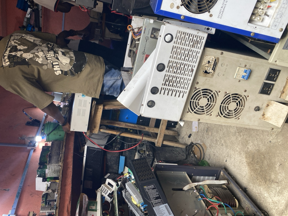 - "The image depicts an indoor electronic repair workshop in Ojo, Nigeria" by FM-Na2vj2, licensed under CC BY 4.0