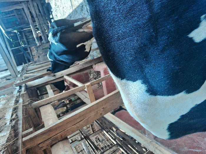 - "The image displays an indoor livestock enclosure in Muthambi ward, Kenya, containing two black and white dairy cows" by FM-UrRWw2, licensed under CC BY 4.0