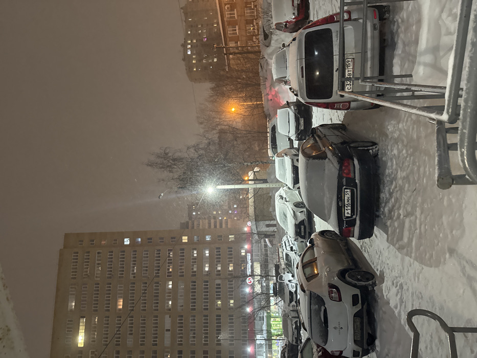 - "A wintry scene captures rows of snow-covered parked cars, a tall building with illuminated windows, and bare trees against a dusky sky" by FM-PZrEh2, licensed under CC BY 4.0