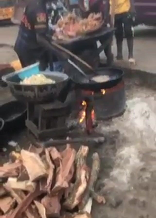 street food vendor in an outdoor environment, likely a roadside or market area