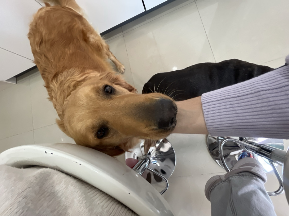 - "The image depicts an indoor scene in Barrio de Nuevo León, Mexico, featuring a golden retriever dog interacting with a human" by FM-0LhgI3, licensed under CC BY 4.0