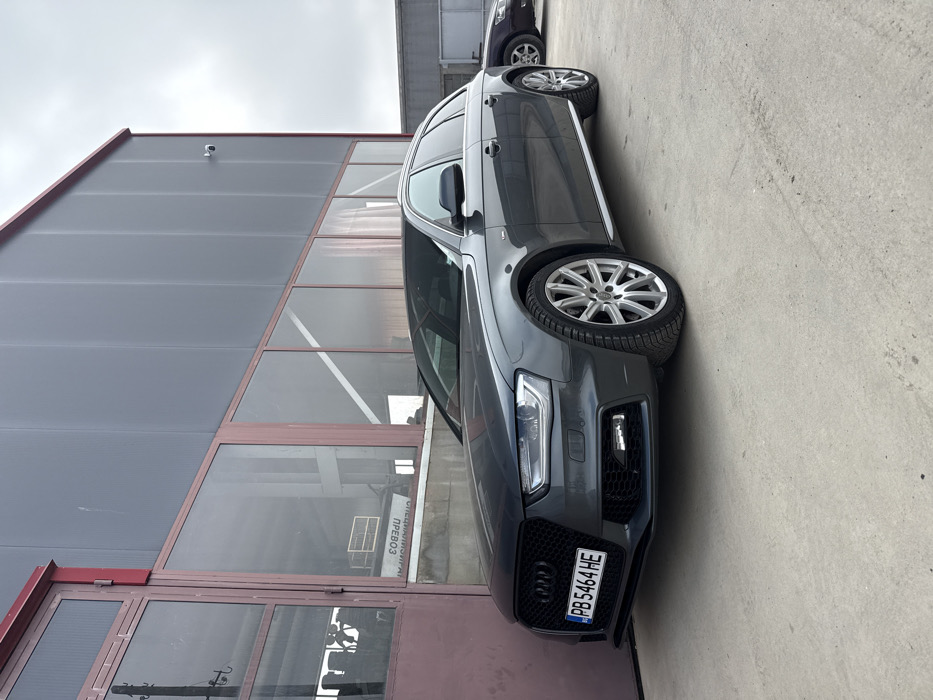 The image depicts a dark gray Audi A4 B8 Avant (wagon) parked outdoors in Trud, Bulgaria, on a light gray paved surface under an overcast sky