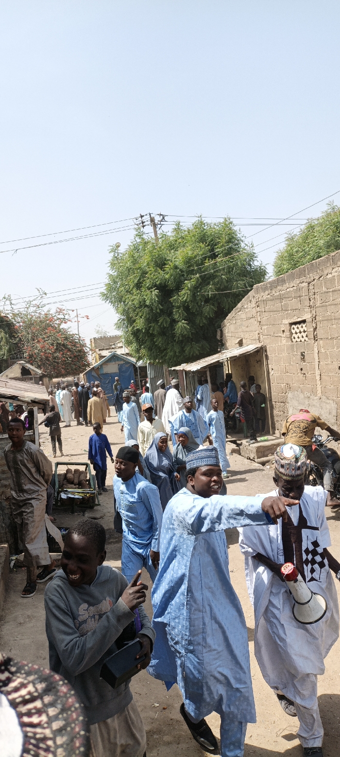 The image captures a daytime scene on an unpaved street in Kaura Goje, Nigeria