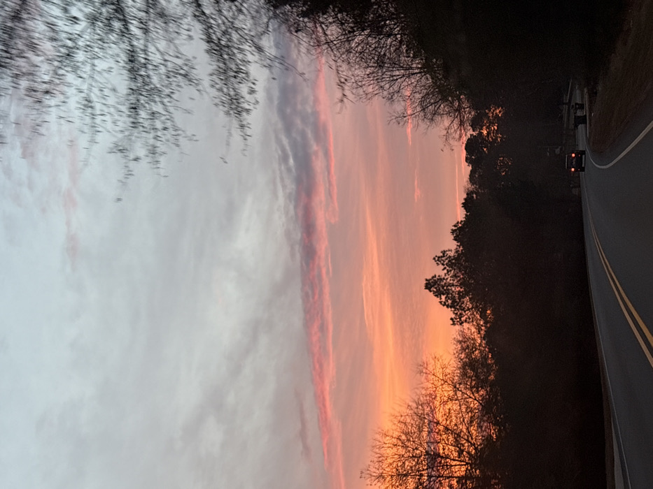 A photographic image captures a rural roadway scene at twilight or dawn in Ball Ground, United States