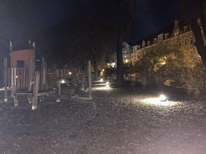 - "The image depicts a nighttime scene at the Spielplatz Rathausplatz in Riesa, Germany" by FM-PXVpr1, licensed under CC BY 4.0