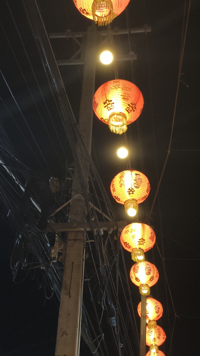 - "The image depicts a nighttime urban scene in Pattaya City, Thailand, dominated by a concrete utility pole on the left and a vertical string of illuminated Chinese lanterns on the right" by FM-O9tY22, licensed under CC BY 4.0