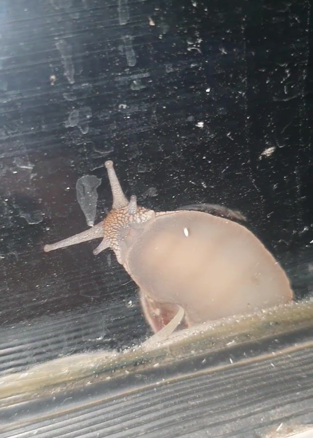 snail crawling on a window