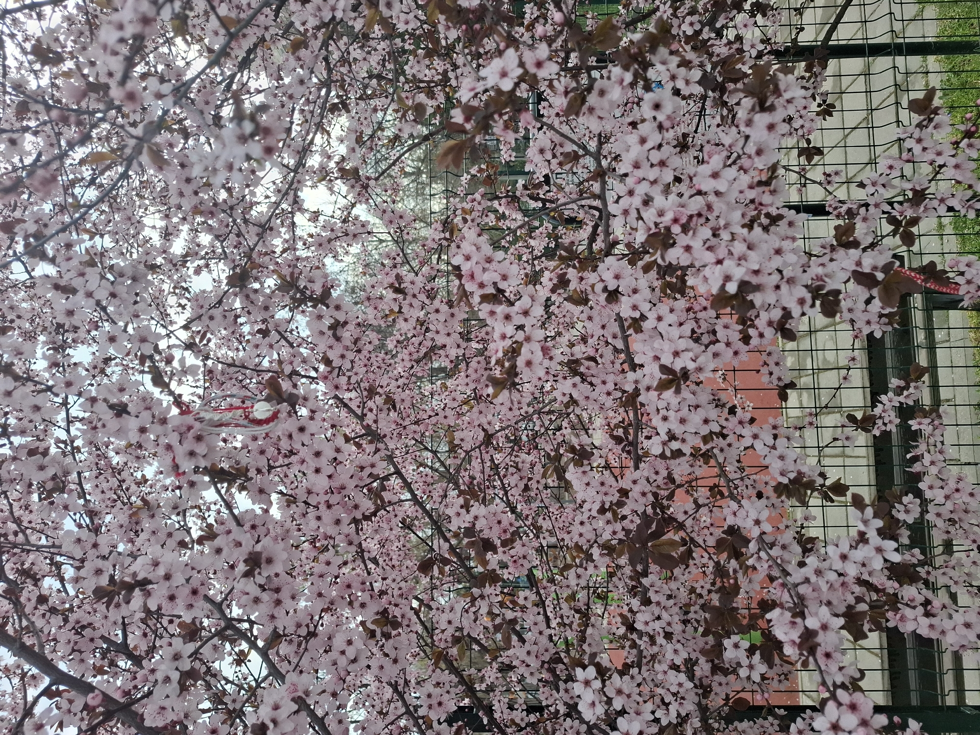 - "The image displays a close-up view of a flowering tree, likely a Prunus cerasifera 'Pissardii' (Cherry Plum), dominated by light pink blossoms and sparse dark purplish-brown leaves" by FM-A6stU2, licensed under CC BY 4.0