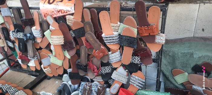 - "The image depicts a crowded display of numerous women's sandals and slip-on footwear, indicative of a market stall in Nairobi, Kenya" by FM-hXnBH3, licensed under CC BY 4.0