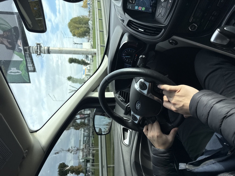- "The image depicts the interior of a Ford vehicle from the passenger's viewpoint, looking through the windshield onto a road scene in Sofiivska Borshchahivka, Ukraine" by FM-HJIgS2, licensed under CC BY 4.0