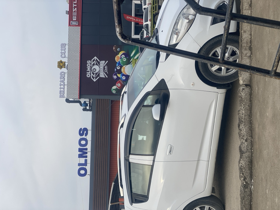 - "An outdoor daytime scene in Bukhara, Uzbekistan, depicts a white Chevrolet Spark/Beat-type hatchback parked on a concrete surface, partially obscured on its right by a dark metal frame in the immediate foreground" by FM-KOYye2, licensed under CC BY 4.0