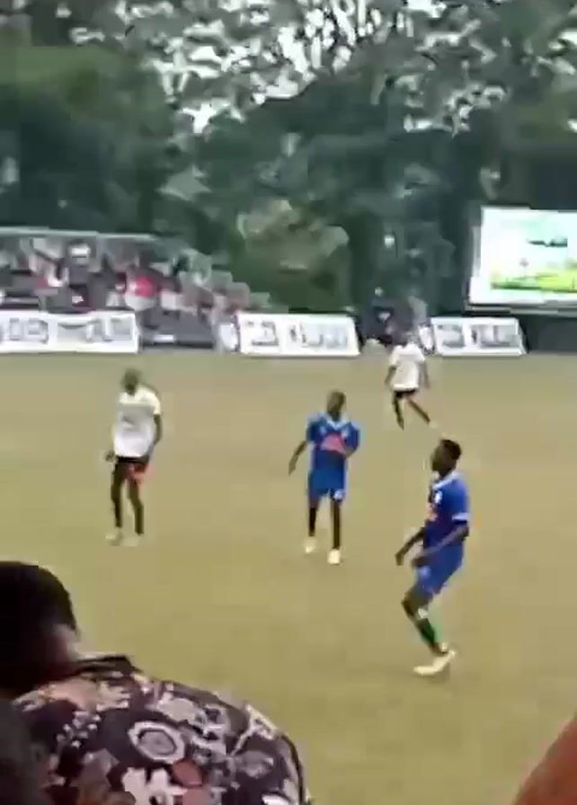 The video opens with a blurry close-up of a head, then pulls back to reveal a soccer game in progress