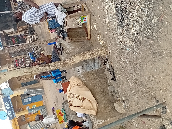 This image depicts an active outdoor scene in Sharada, Nigeria, characterized by informal commerce and activity under daylight conditions