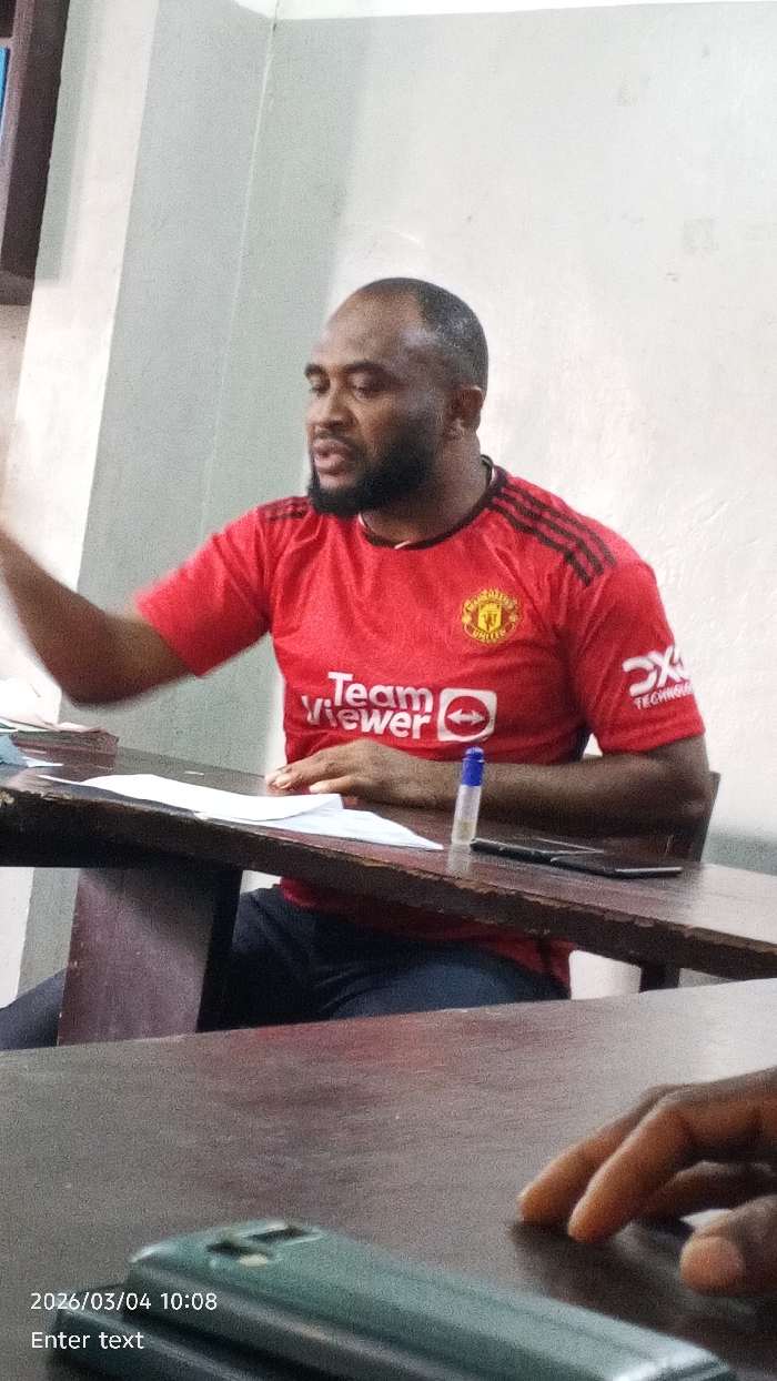 The scene is an indoor setting in Dakata, Nigeria, on 2026/03/04 at 10:08, featuring a dark-skinned adult male seated at a wooden desk