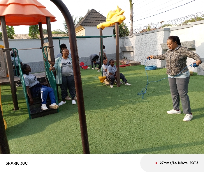 The image depicts an outdoor playground scene in the city of Barden Yana, Nigeria
