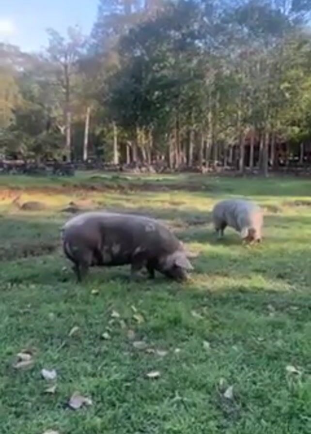 - "Two pigs are foraging in a grassy area under a blue sky, dotted with some clouds" by FM-NScrU2, licensed under CC BY 4.0