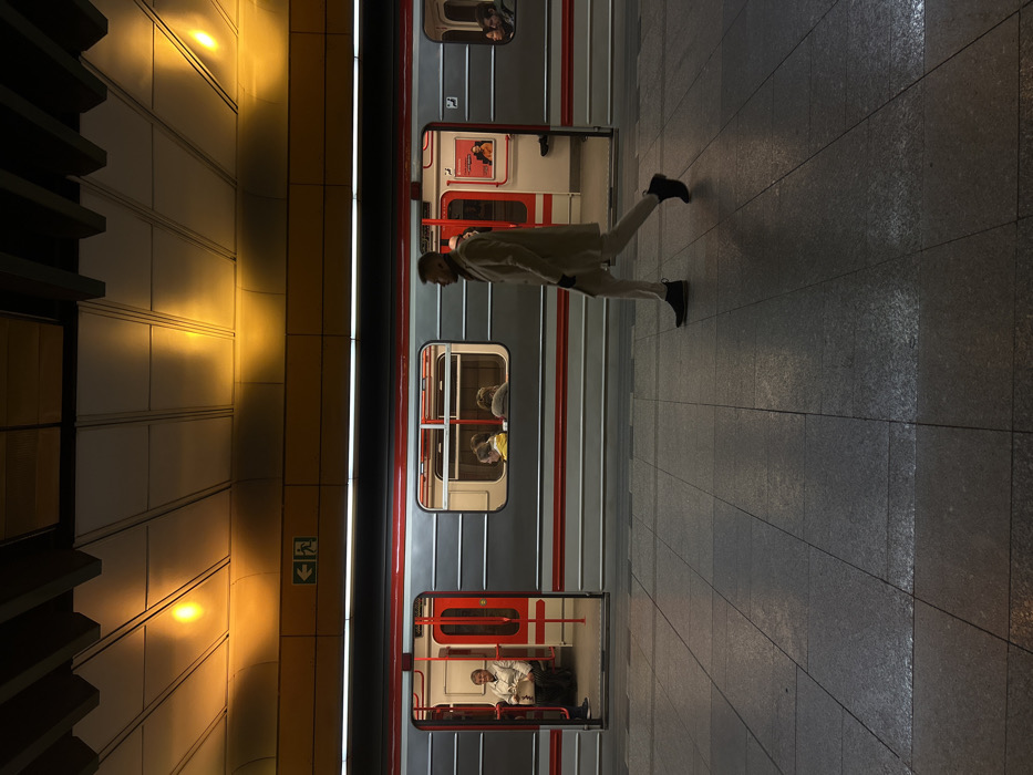 A metro station platform in the city of Unknown, Unknown, is depicted