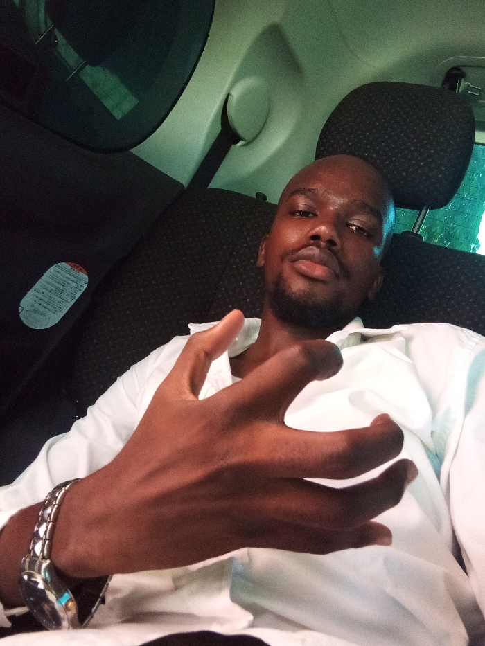 A dark-skinned male, bald with a short beard, is seated in the interior of a vehicle, in what is identified as Ganjoni/Shimanzi ward, Kenya