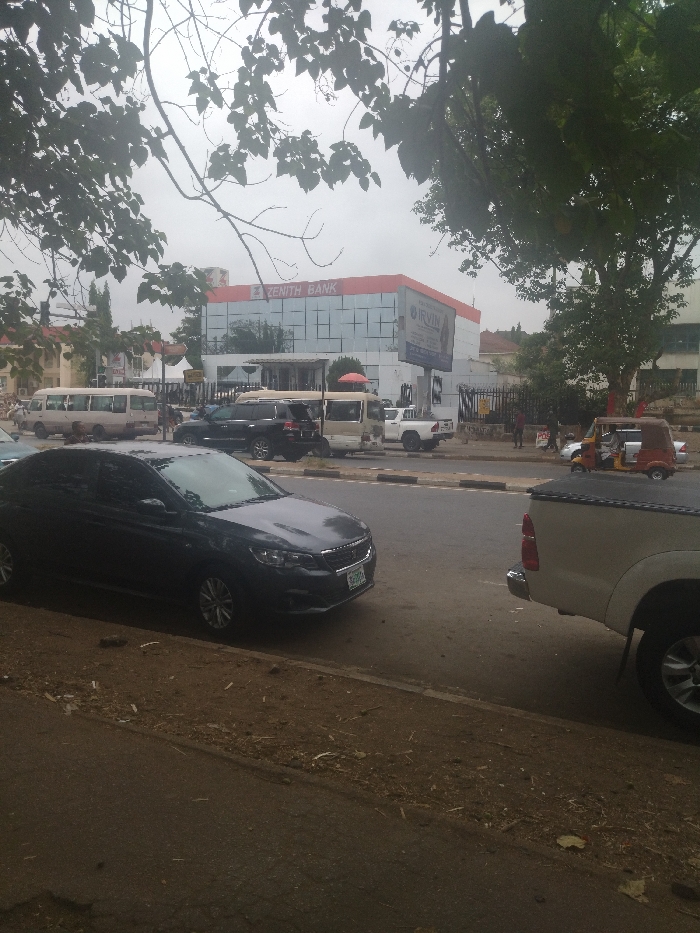 street scene in front of a Zenith Bank branch in Aso, Nigeria (latitude: 9