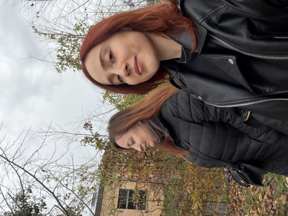 The image depicts two females outdoors in Illkirch-Graffenstaden, France, on an overcast day during autumn