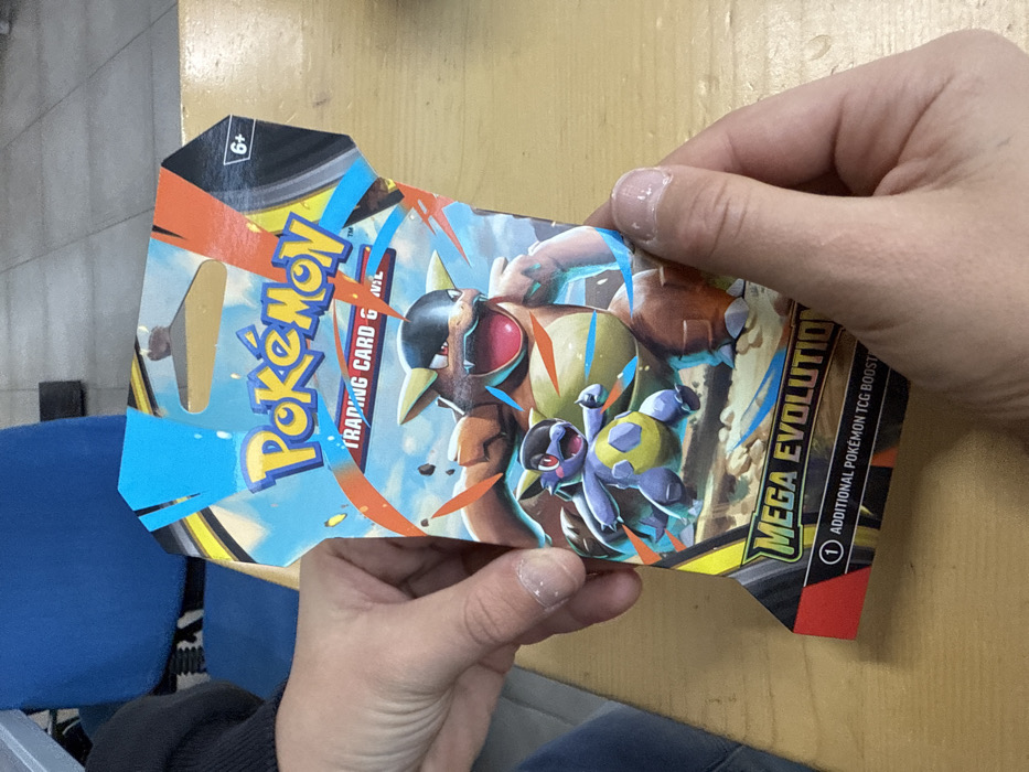 - "The image captures a close-up of two human hands holding a sealed "Pokémon Trading Card Game MEGA EVOLUTION" booster pack" by FM-iCfSu2, licensed under CC BY 4.0