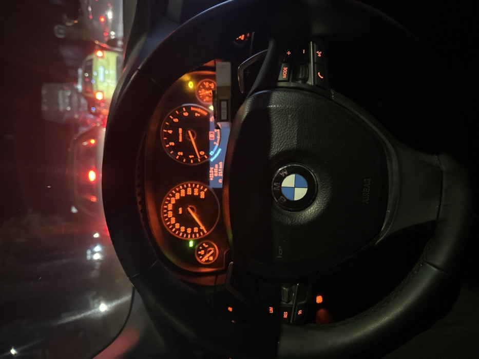 The image presents a driver's perspective from a BMW vehicle at night, facing forward into a queue of traffic within Al-Qaboun Municipality, Syria