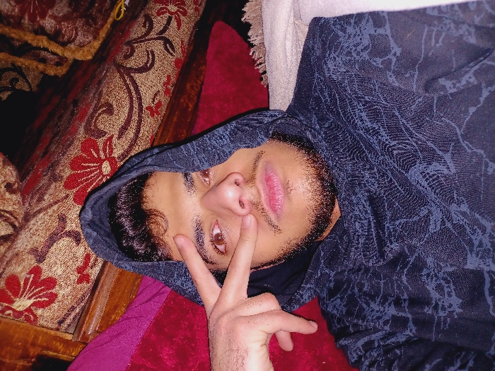 - "A young man with a beard and brown eyes lies on a red surface, possibly a blanket or cushion, wearing a dark hooded top" by FM-hmmxi2, licensed under CC BY 4.0