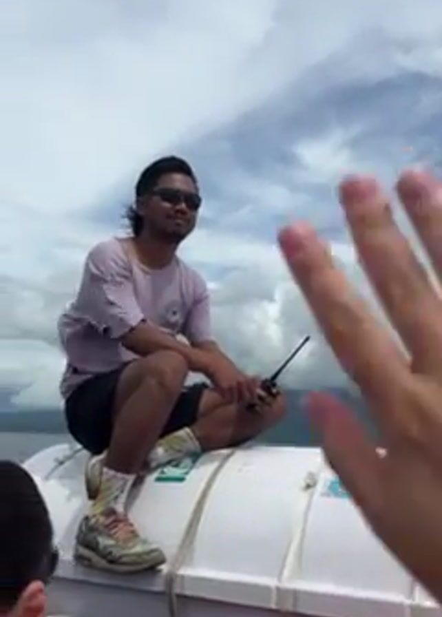 person on a boat waving to the camera