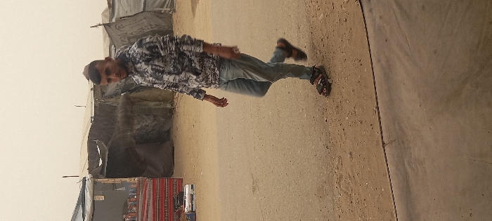 - "An outdoor scene in Khan Yunis, Palestinian Territory, features a young adult male walking leftward on a ground surface composed of packed dirt transitioning to a darker, possibly paved, area" by FM-INiU52, licensed under CC BY 4.0