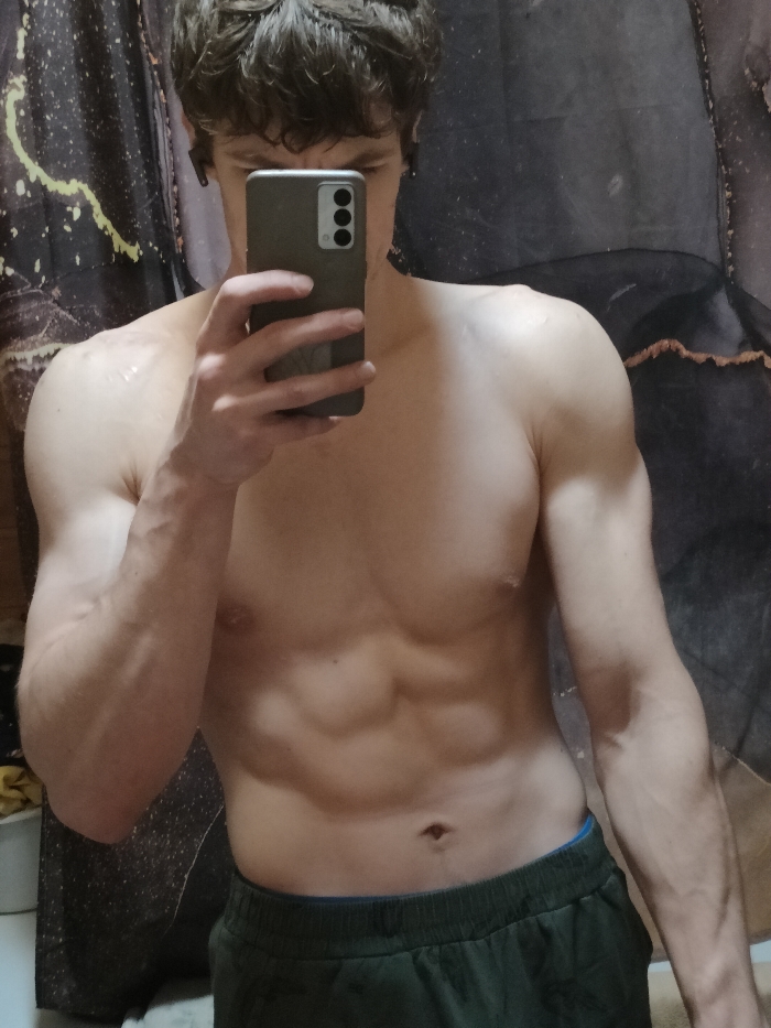 - "A muscular man stands shirtless in a bathroom, taking a selfie" by FM-jApwm1, licensed under CC BY 4.0
