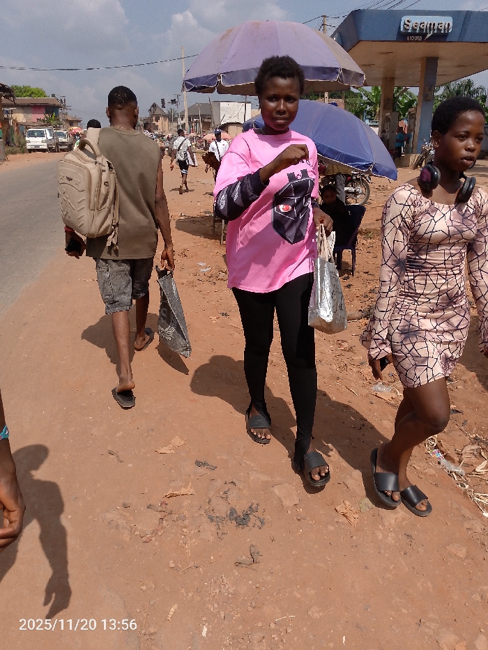 On November 20, 2025, at 13:56, an outdoor street scene is captured in Nnobi, Nigeria