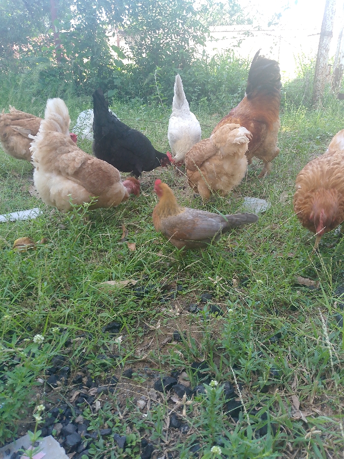 - "A flock of chickens roams in a grassy yard" by FM-eI8CE3, licensed under CC BY 4.0