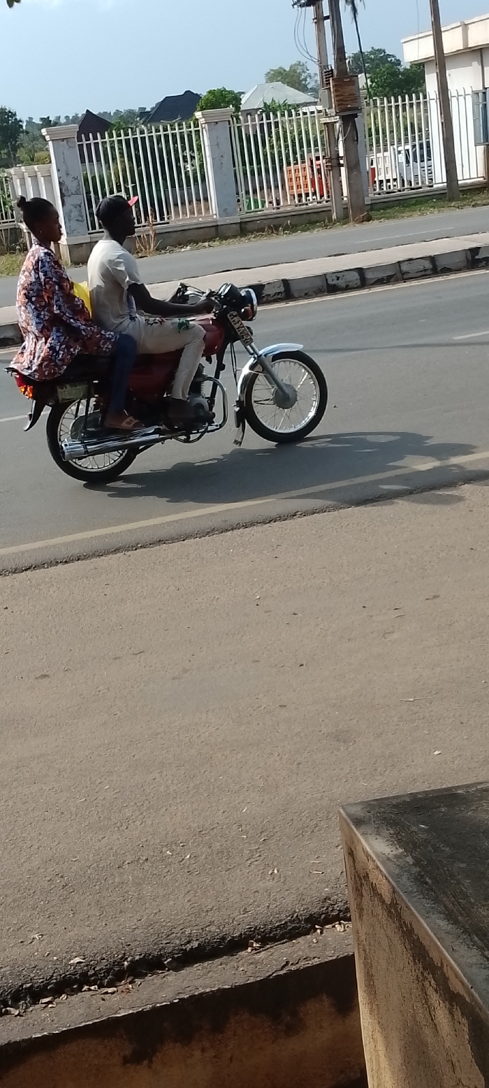 - "Two individuals are observed riding a red motorcycle on a paved road in Lokoja, Nigeria, under clear daytime conditions" by FM-OxCpB3, licensed under CC BY 4.0