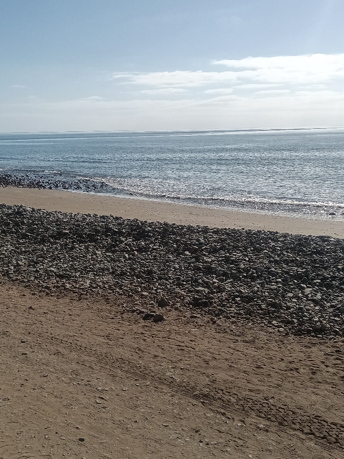 - "The image depicts a coastal scene in San Bartolomé de Tirajana, Spain, characterized by a pebble beach meeting the ocean under a clear sky" by FM-63vGE2, licensed under CC BY 4.0