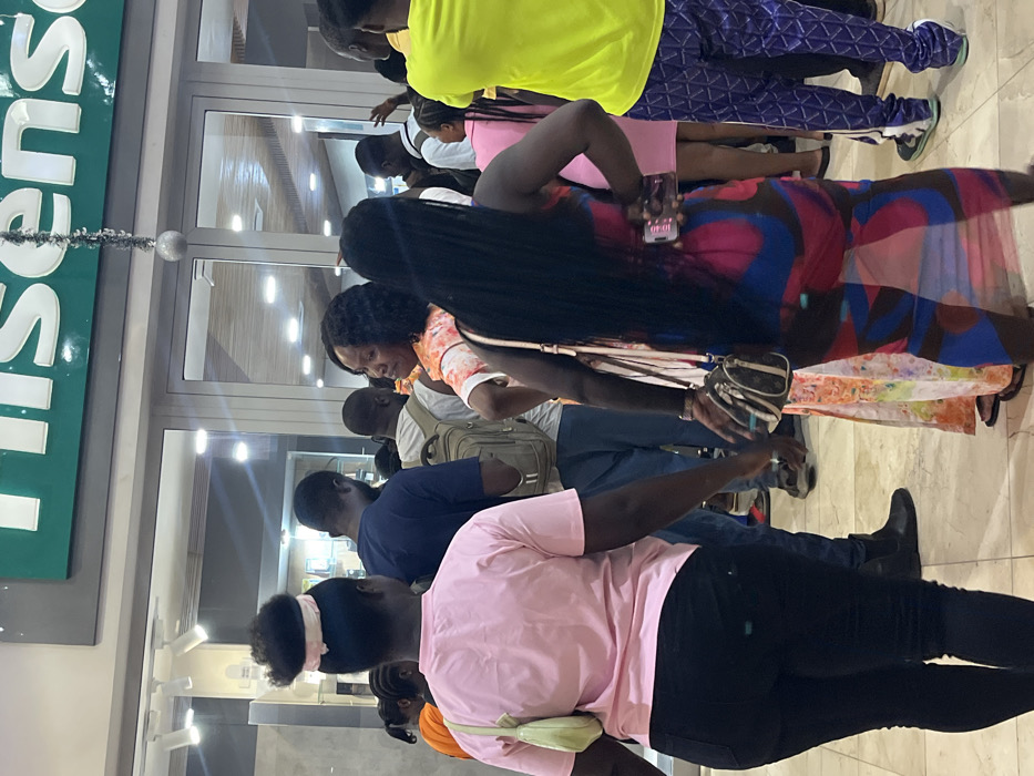 The image displays an indoor scene within a commercial establishment in the city of Mile 11, Ghana