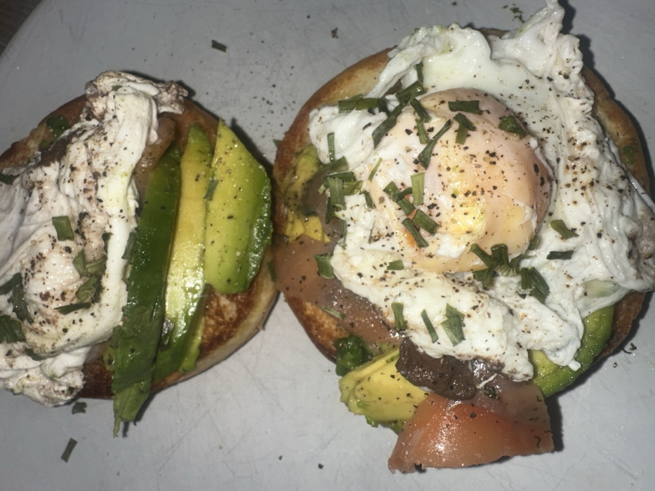 - "This image displays two open-faced, toasted bagel halves prepared with various toppings, presented on a light-colored, possibly grey, flat surface in Châtenay-Malabry, France" by FM-sLbVd2, licensed under CC BY 4.0
