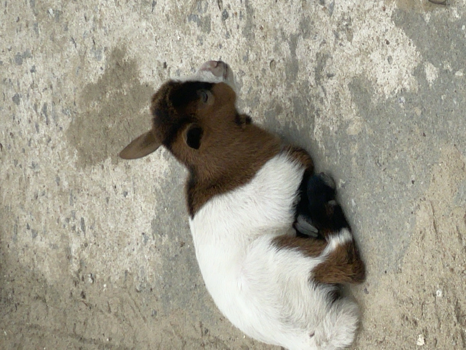 - "A small goat lies on a concrete surface" by FM-pK89w1, licensed under CC BY 4.0