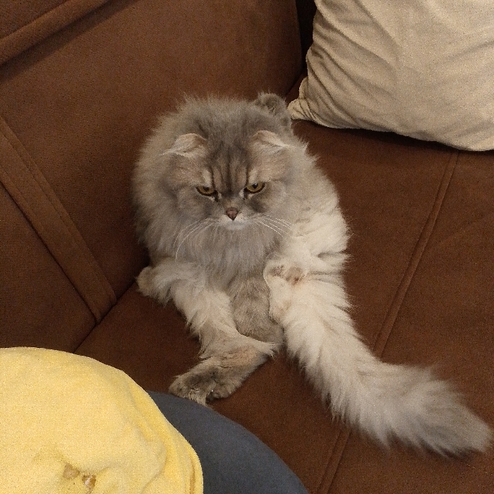 - "A long-haired feline, consistent with a Persian or similar breed, is seated on a brown upholstered sofa in Baghdad, Iraq" by FM-o4pOG2, licensed under CC BY 4.0