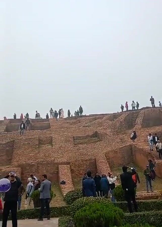 - "The video depicts a crowd of people gathered around Gokul Medh, an ancient archaeological site with brick structures resembling a stepped pyramid" by FM-OvDwh1, licensed under CC BY 4.0