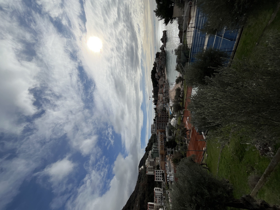 - "The image depicts a panoramic view of the coastal town of Pržno, Montenegro, under a partly cloudy sky with the sun visible in the upper right quadrant" by FM-qbOPh2, licensed under CC BY 4.0
