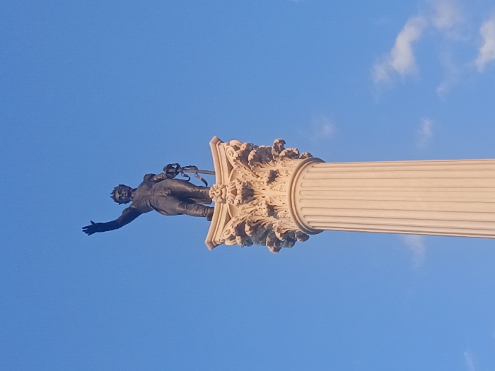 - "A bronze statue of a man in early 19th-century attire stands atop a tall, fluted column against a vibrant blue sky with scattered clouds" by FM-YF5w12, licensed under CC BY 4.0