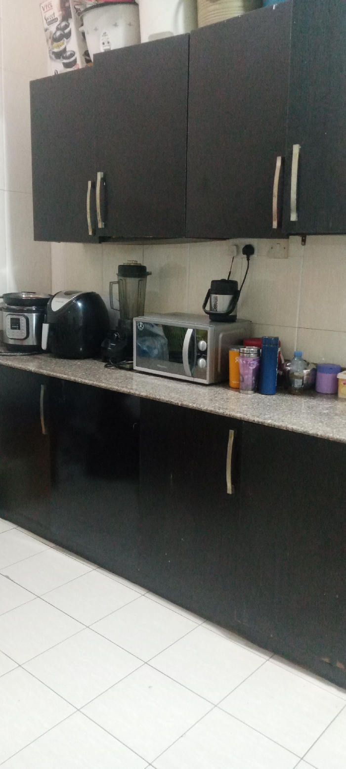 - "A kitchen scene shows dark brown cabinets above and below a countertop, filled with small appliances" by FM-MVDLR2, licensed under CC BY 4.0