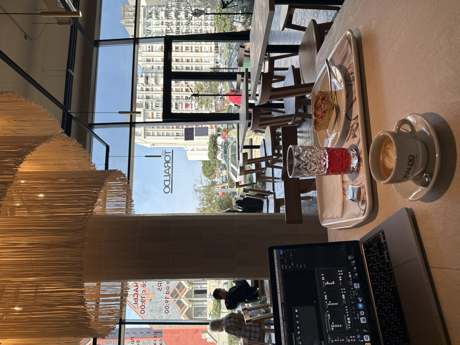- "The image depicts an indoor scene within a modern cafe, identified by a reversed "CAFE TORALDO" sign visible through the window, located in Polje, Montenegro" by FM-CDHqs1, licensed under CC BY 4.0