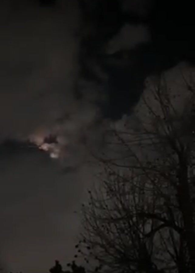 night scene with a cloudy sky and a silhouette of bare trees in the foreground