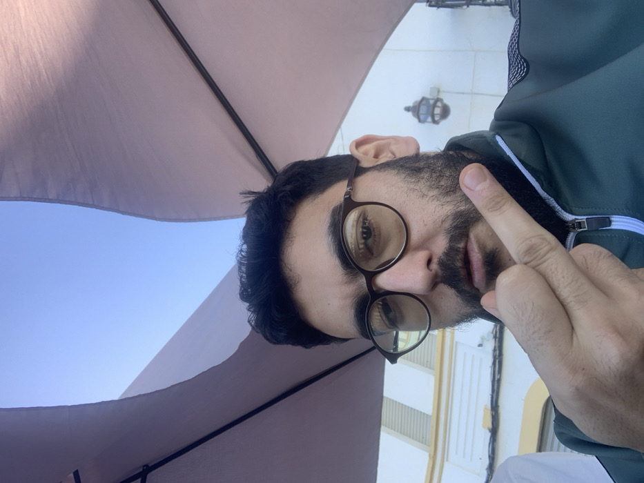 - "A male individual with dark hair, a beard, and brown-rimmed glasses with amber-tinted lenses is depicted in a close-up, outdoor shot in Tangier, Morocco" by FM-5gXC02, licensed under CC BY 4.0