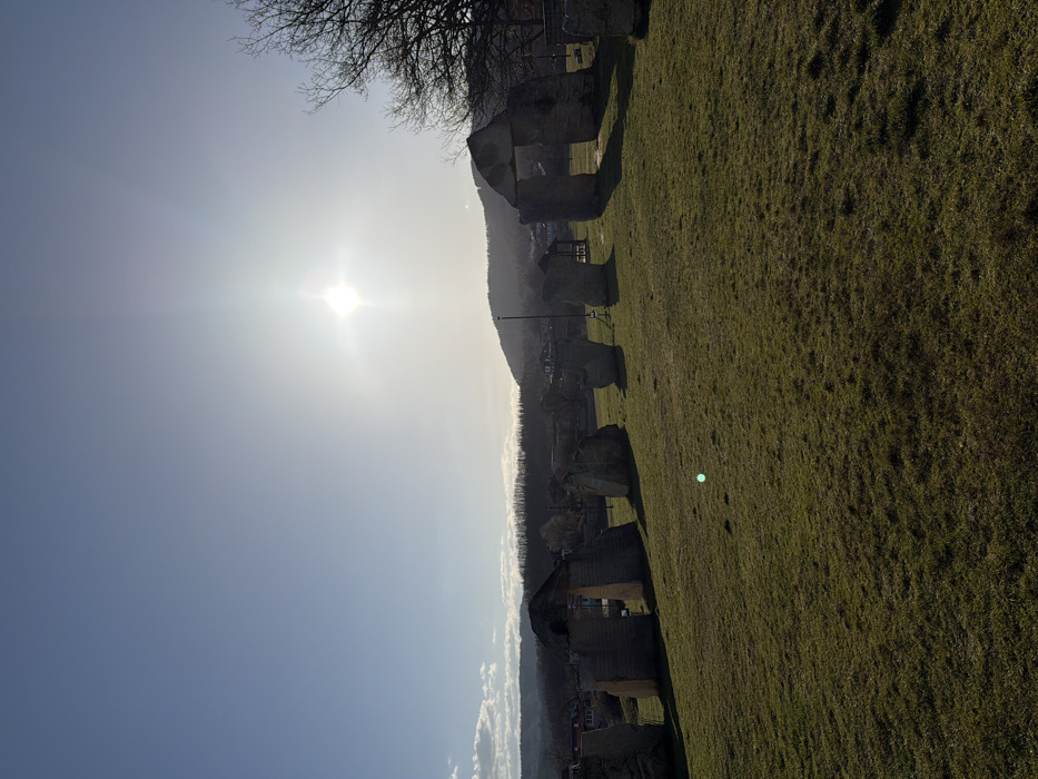 - "The image displays an outdoor scene in Rayuvtsi, Bulgaria, under a clear, bright blue sky with the sun prominently visible in the upper right quadrant, emitting strong glare and a starburst effect" by FM-mFfAq2, licensed under CC BY 4.0